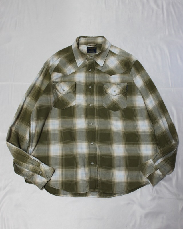"90s Woolrich ombre check shirt" ¥6600(taxin) size L ウエスタン調でオンブレのグッドレギュラーなウールリッチのシャツ 配色も相待って今時期すぐに着たい。 今は一枚で、もう少し涼しくなったらインナー使いなんかも良さそうです。 サイズもLで良いサイズ。 プライスも¥6600はかなりグッドかと。 着丈 72cm 身幅 56cm 肩幅 46cm 袖丈 61cm 次回発送は11.5〜 傷や汚れは記載させて頂いておりますが、古着のため漏れが生じる可能性がございます。 商品の返品交換は承っておりませんので、ご了承ください。