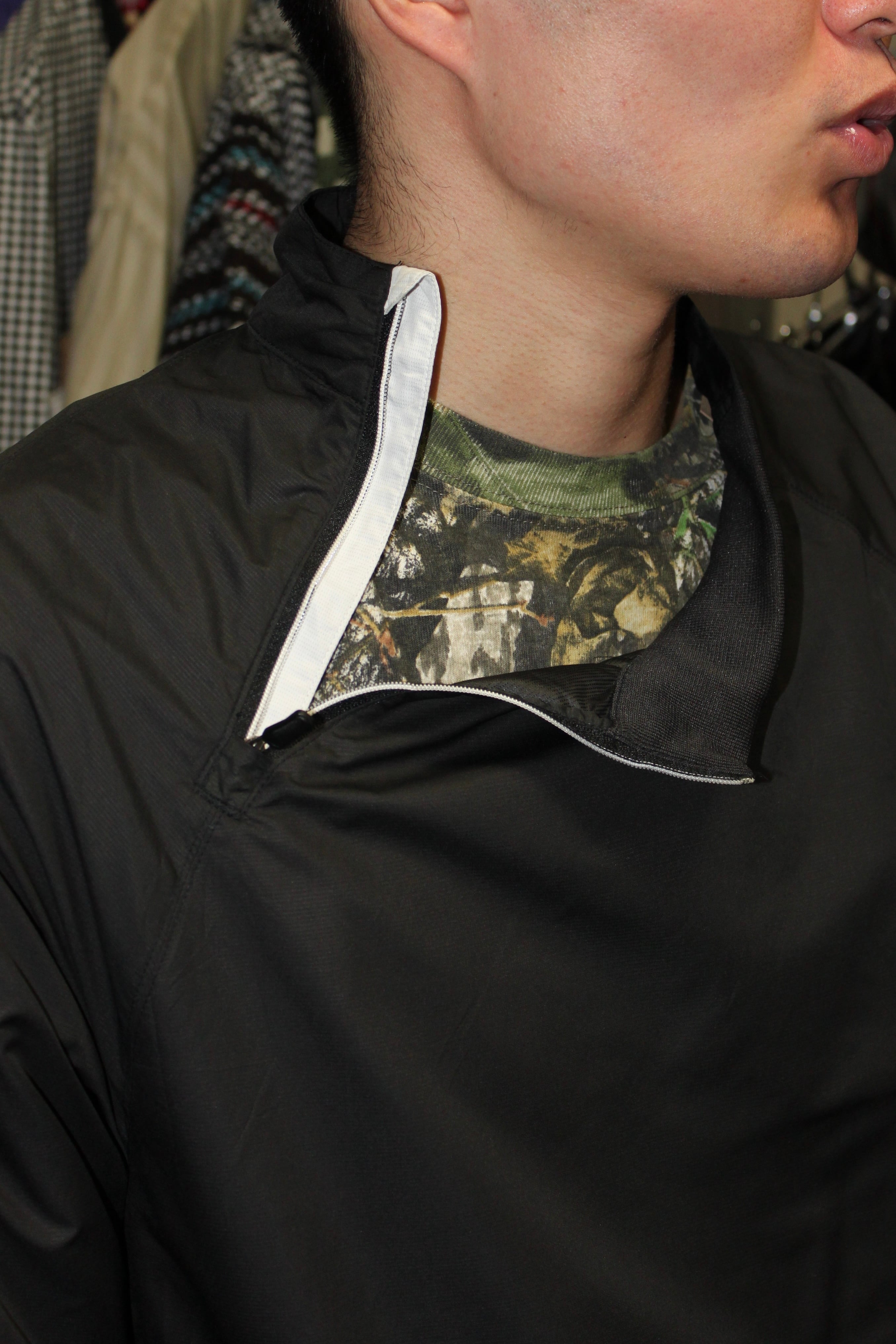 ナイキのユーロものなどに見られるアシンメトリージップが特徴的なジャケットです。
