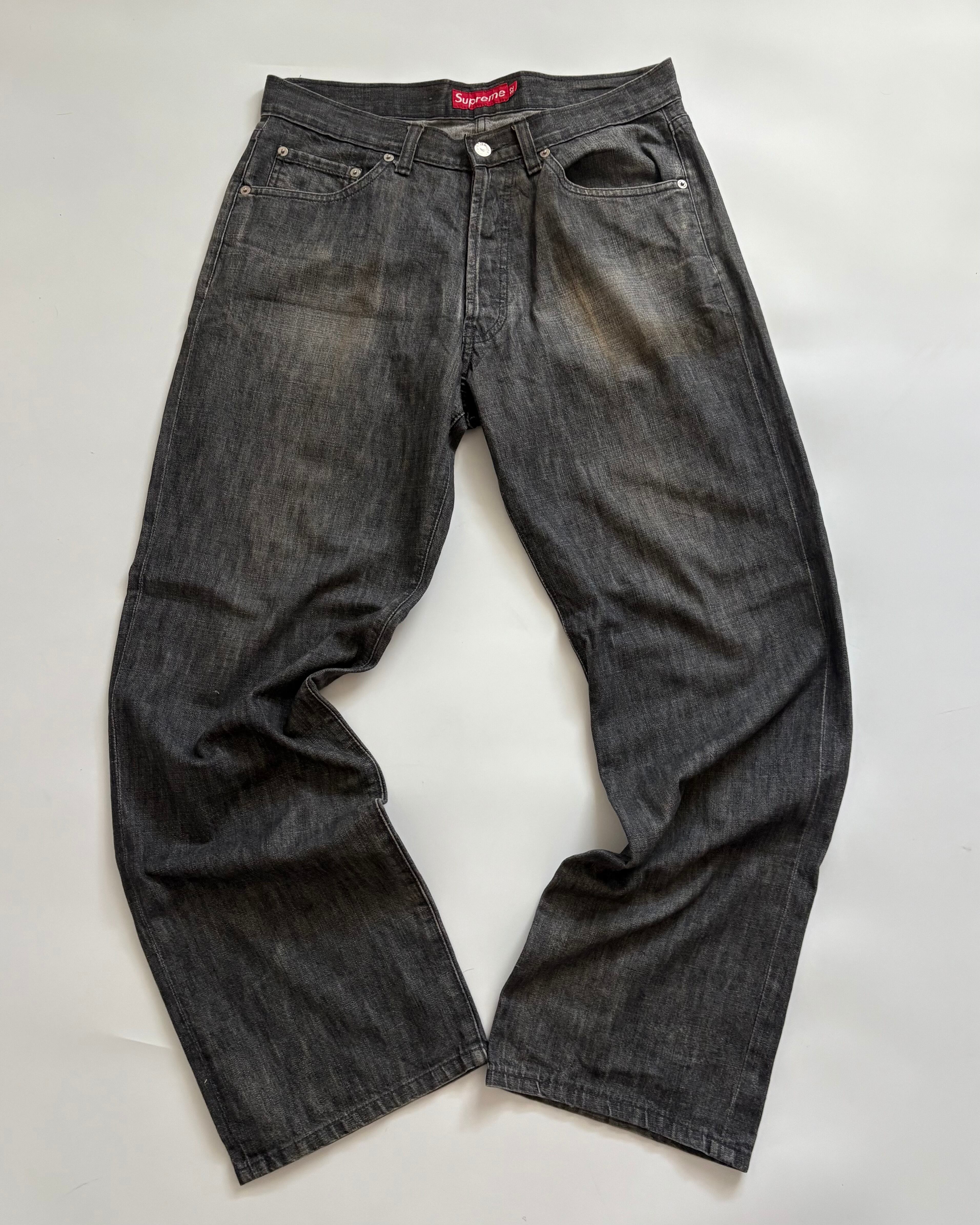 supremeというストリートブランドでありながらもどこか上品さも感じる色味とシルエットで、 Levi'sのブラックの先染めなどに近い色合いです。あと染めとかとはまた少し違います。