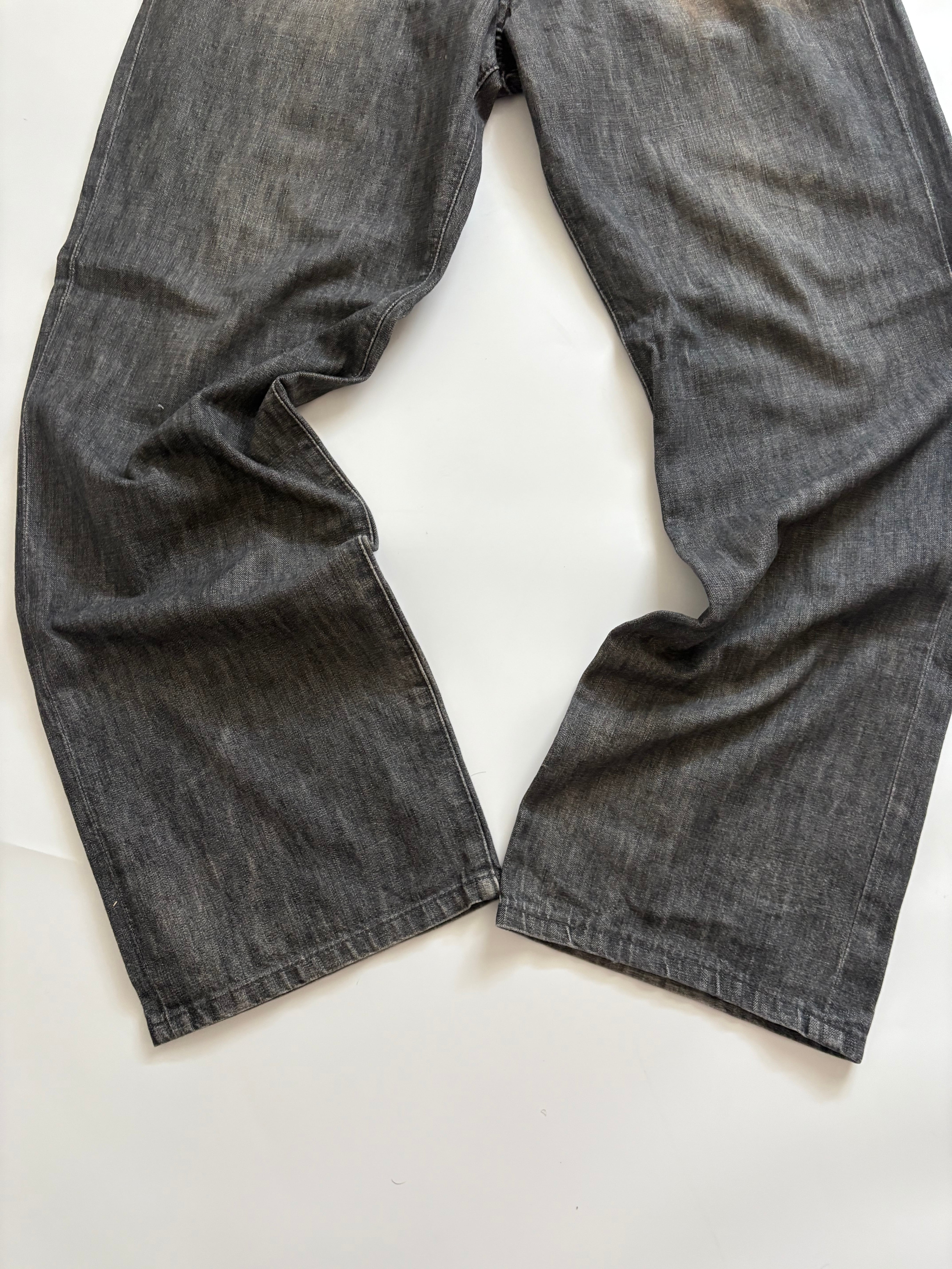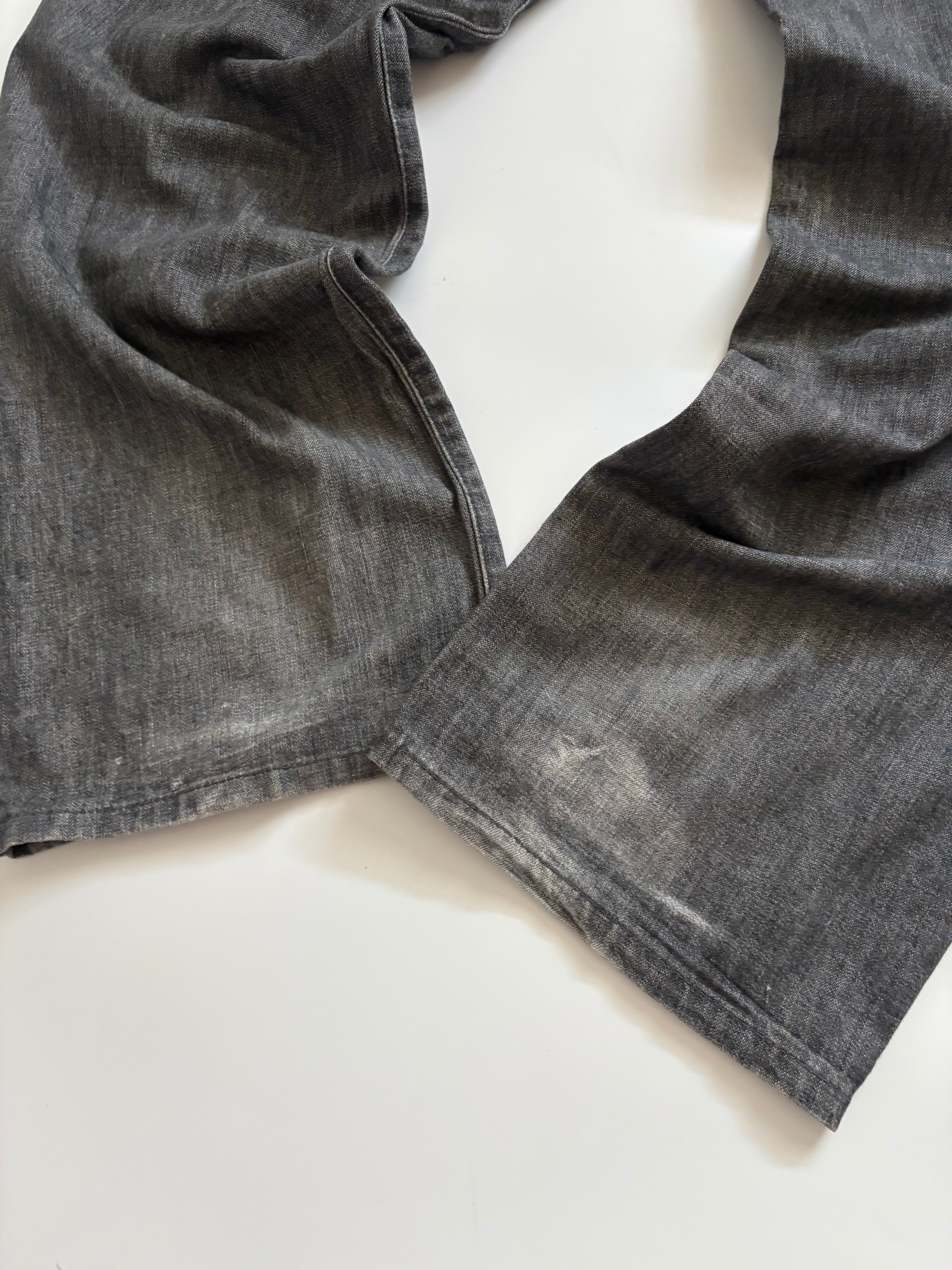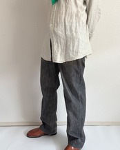 おそらくエイジング加工されているあからさまな色落ちと裾にかけてほとんどテーパードのない綺麗なストレートシルエットが特徴的