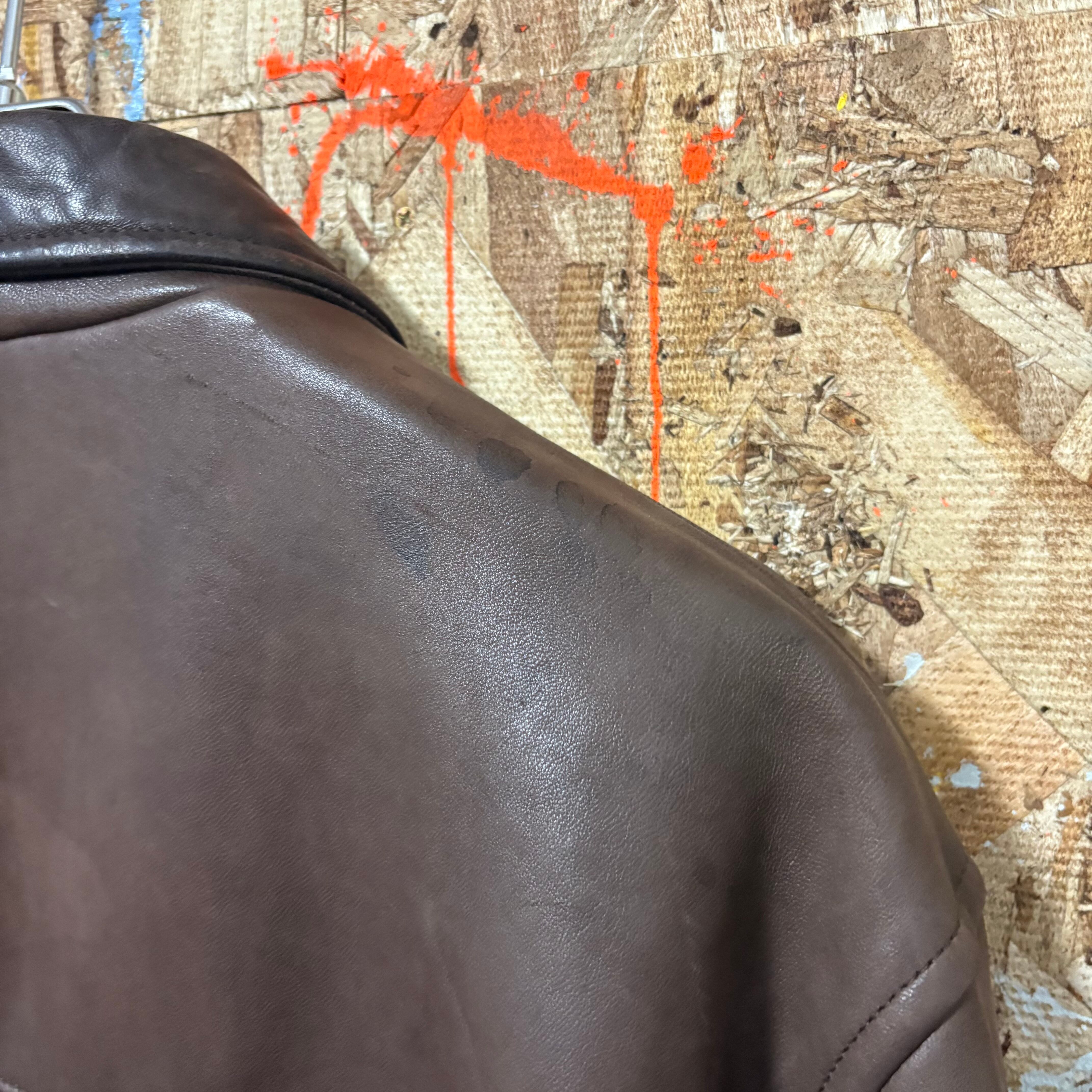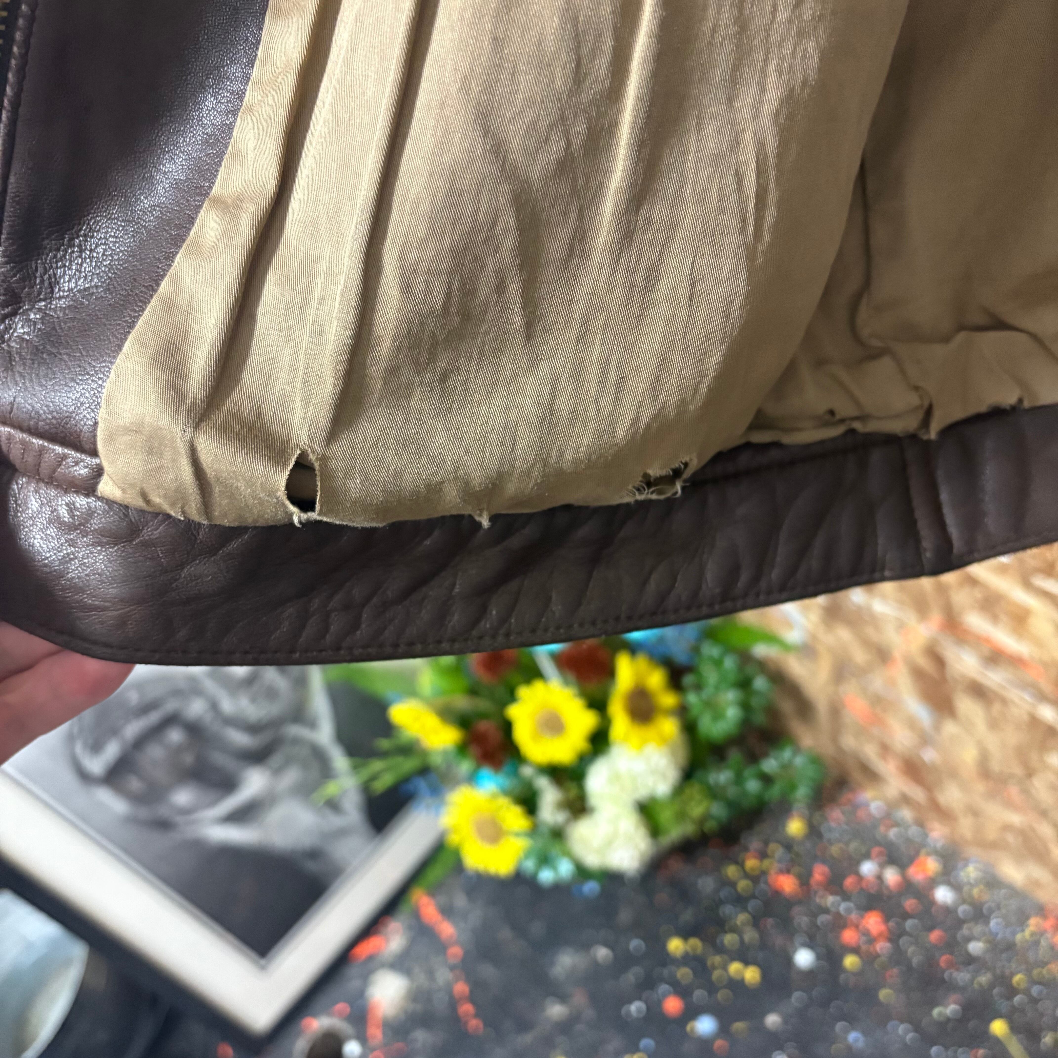 レザーではないインナー部分の右ハンドポケットと裏地の裾付近に少し破れがあるので画像で確認ください。