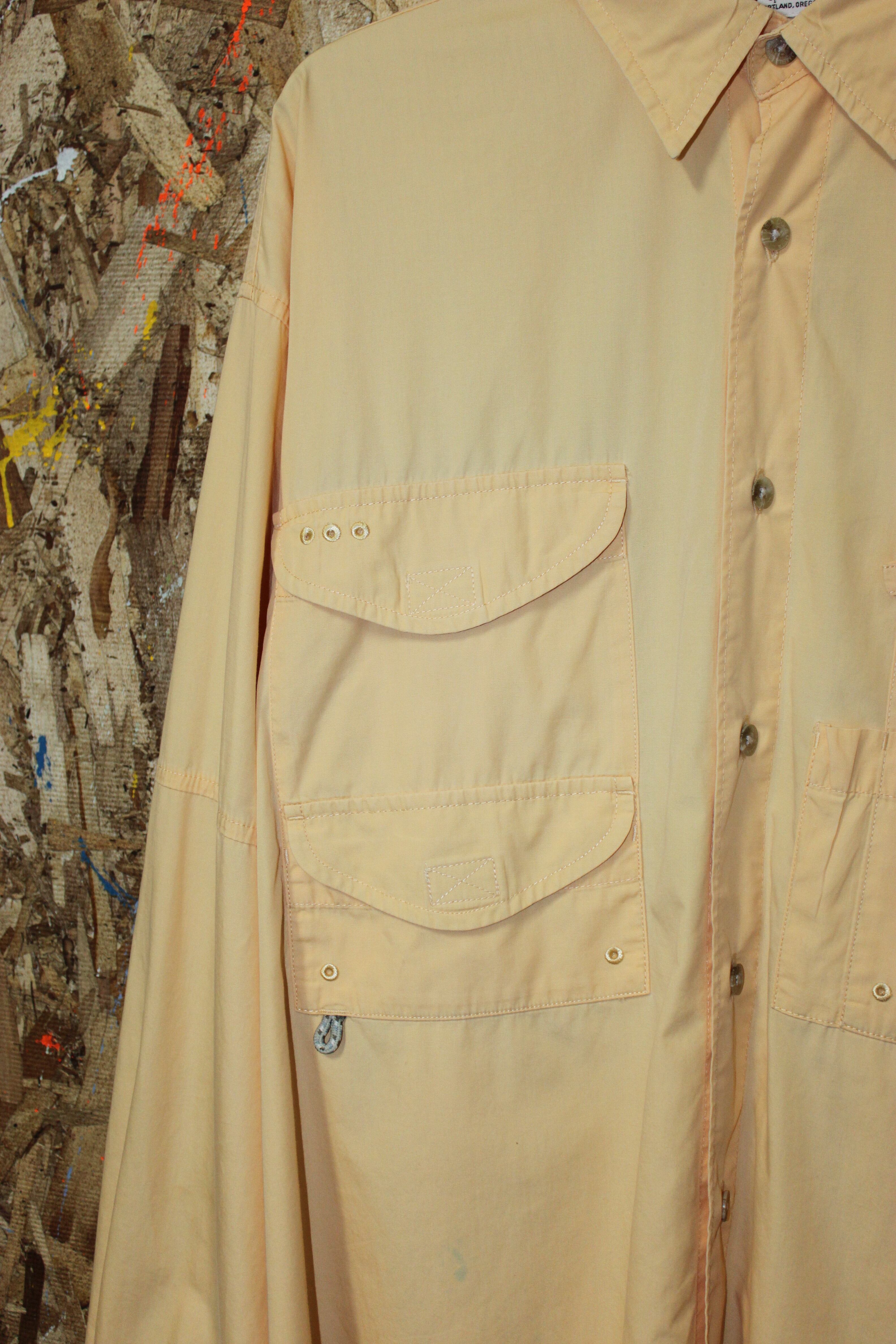 ルアーなど小道具を多用する釣りでは重宝するのでそういった機能になったと思われますが、ファッション的にもアウトドアテイストなシャツは普通のカジュアルブランドとはまた違う雰囲気で、同じシャツでも全く違う使い方ができます。