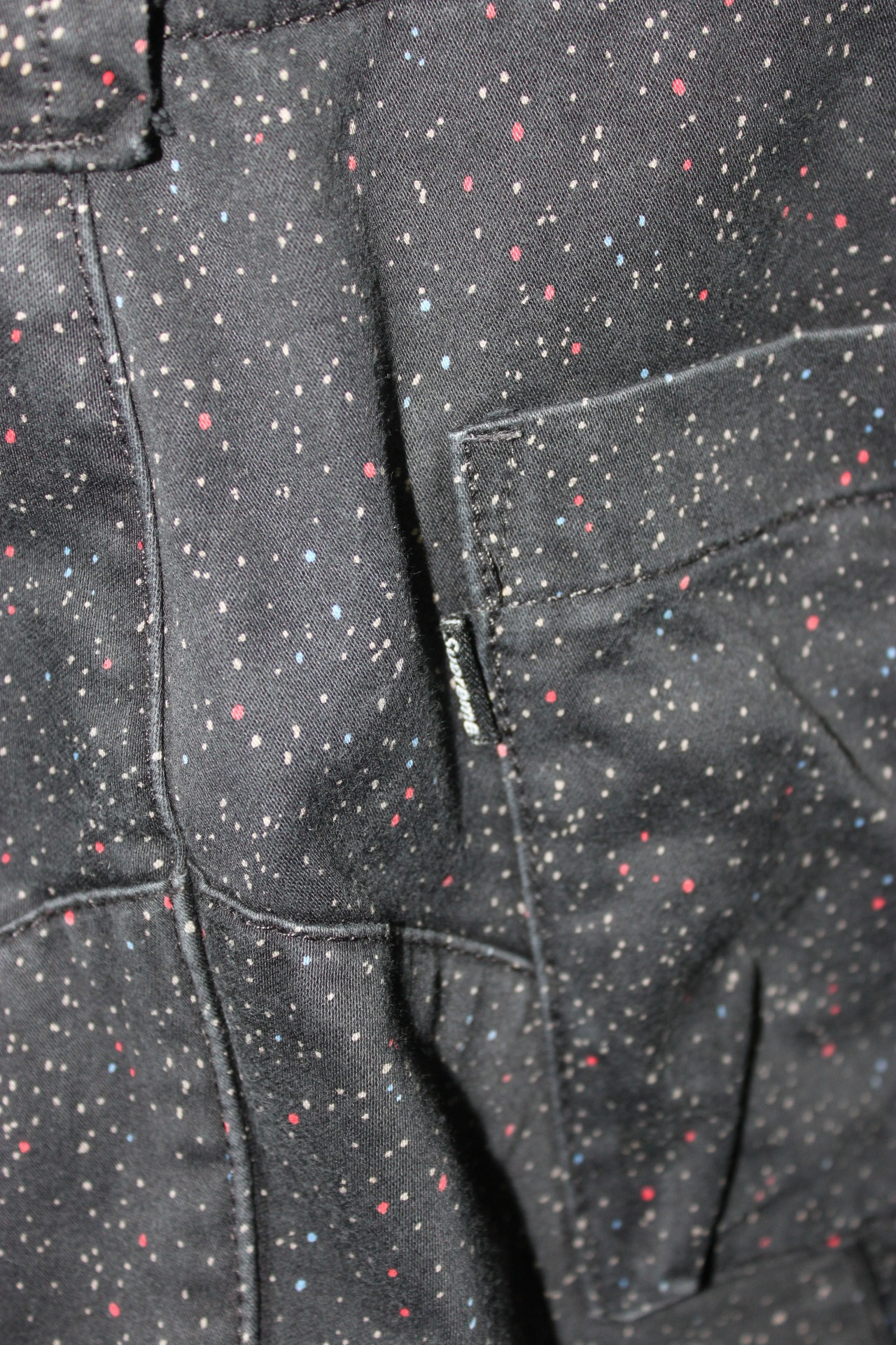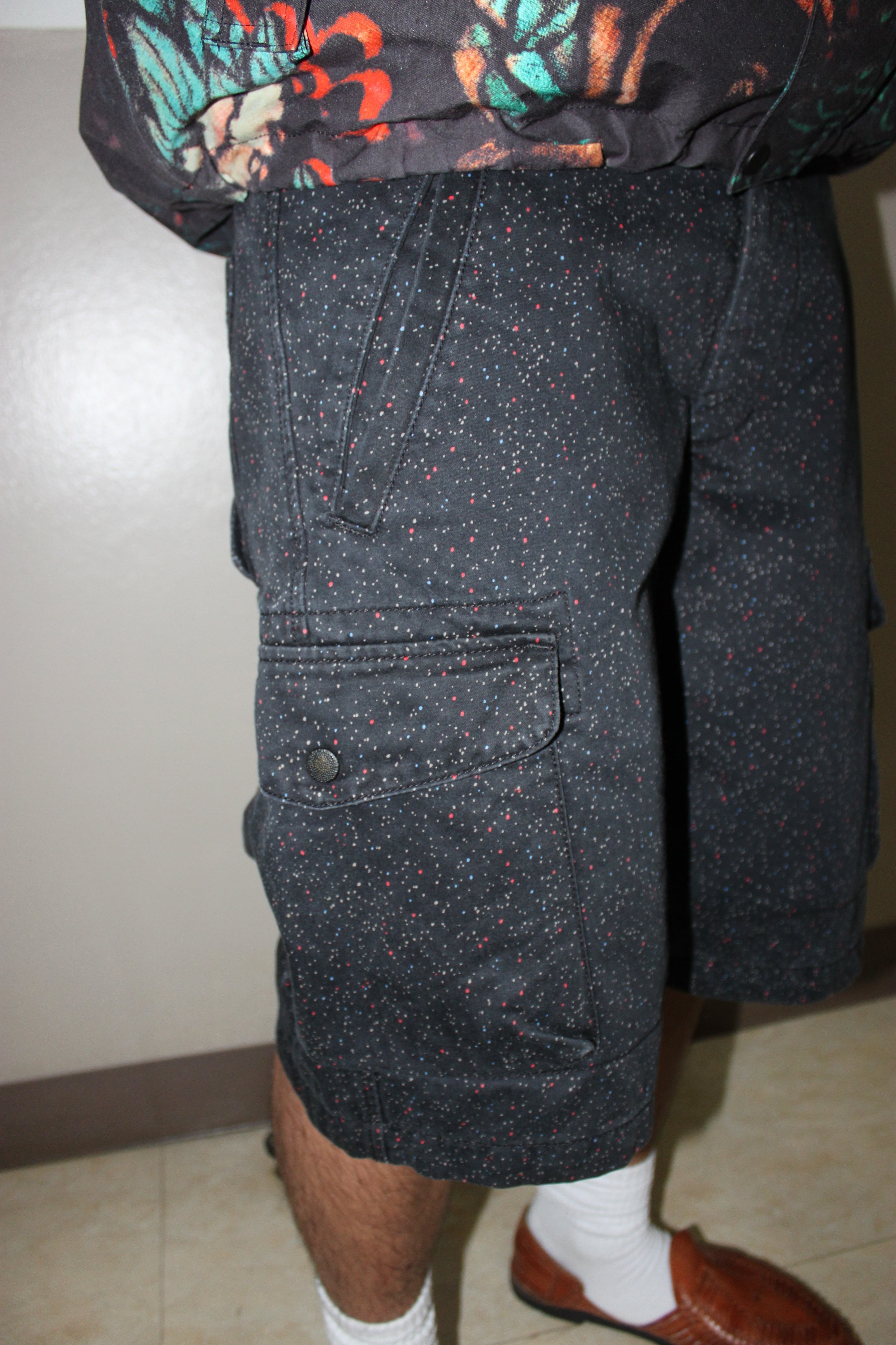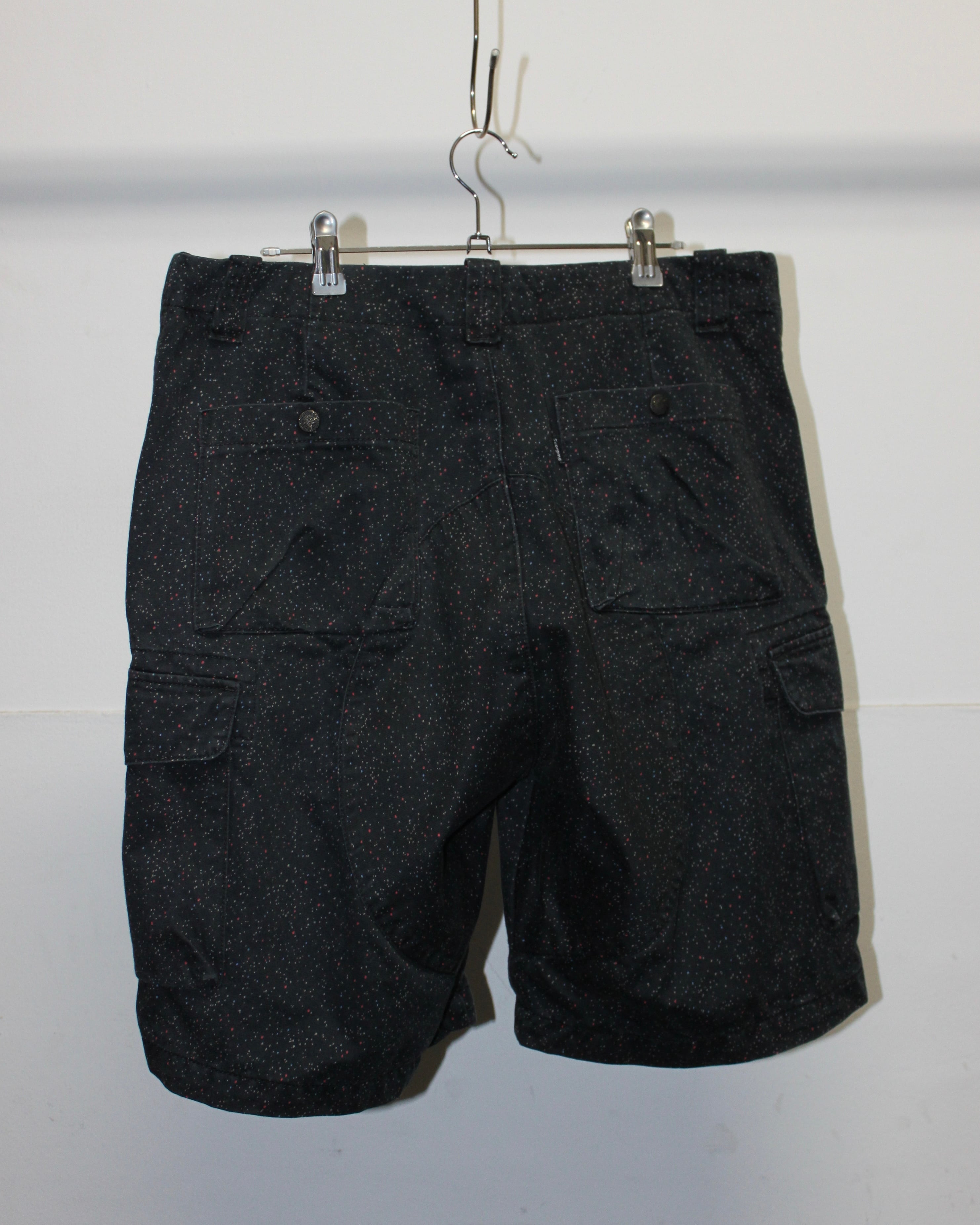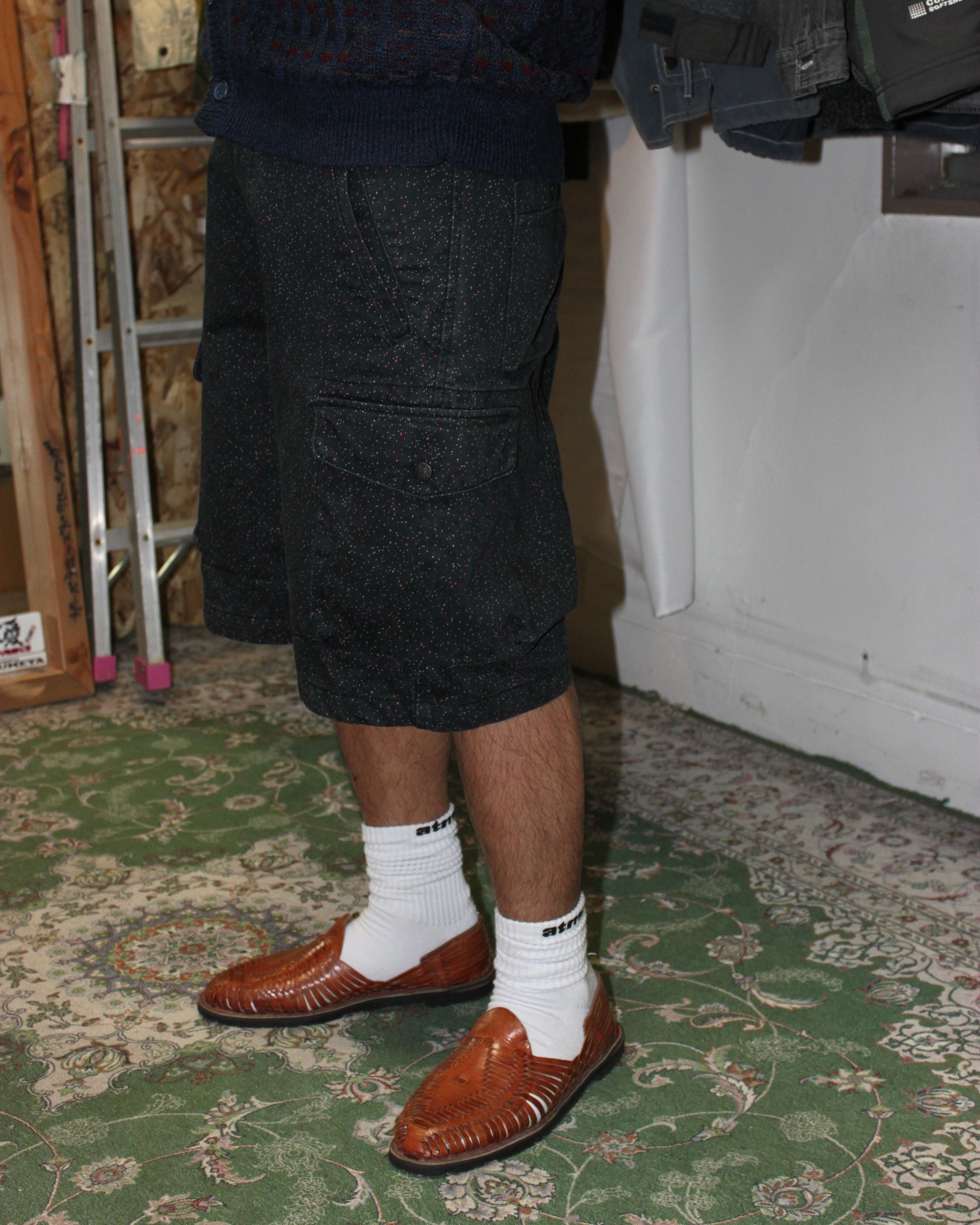 ネップのようにカラフルな小さい斑点が入るカーゴショーツ。