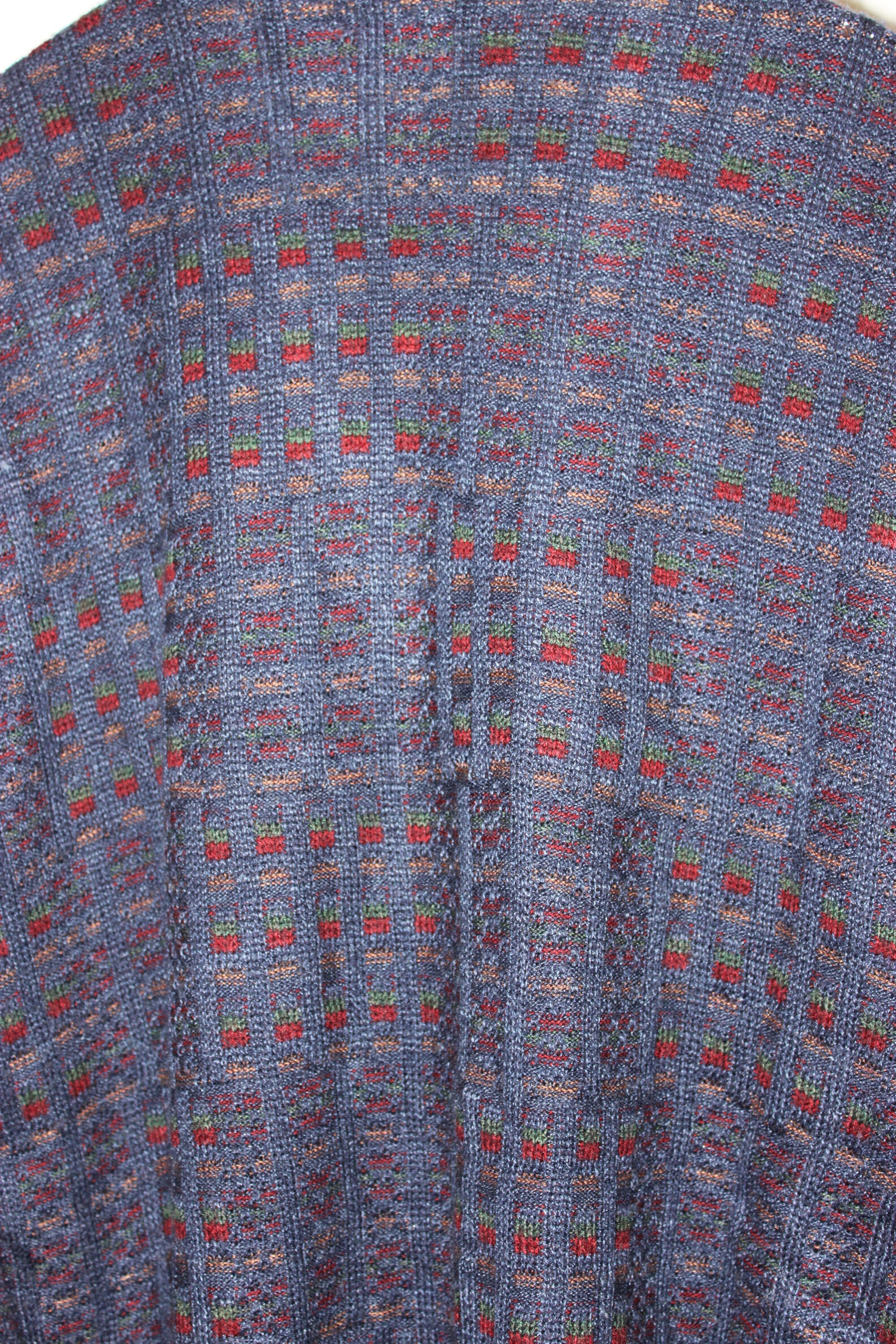 格子状の編みが複数のカラーと複雑なブロックのサイズパターンで編まれていてラグジュアリーブランド的なデザインの印象です。