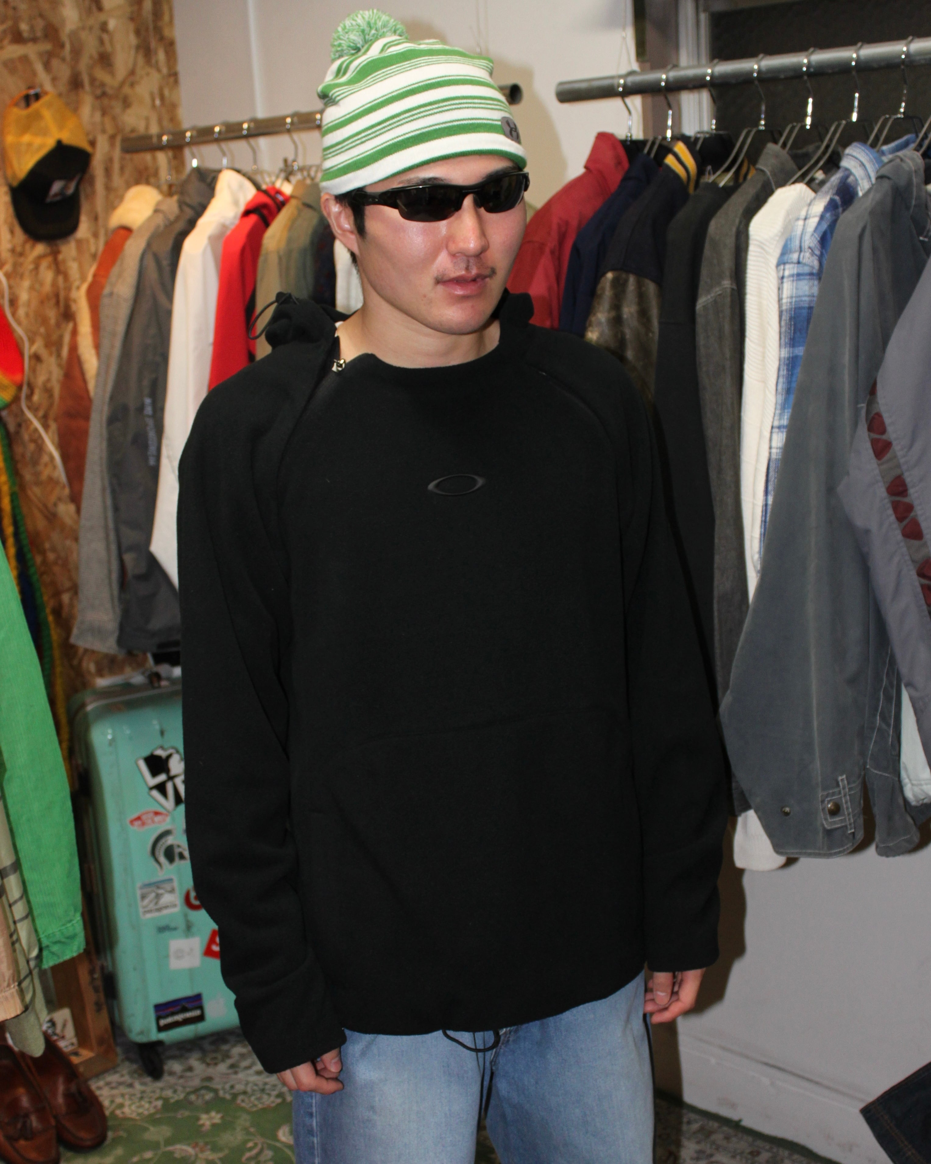 "00s Oakley shoulder zip fleece hoodie"