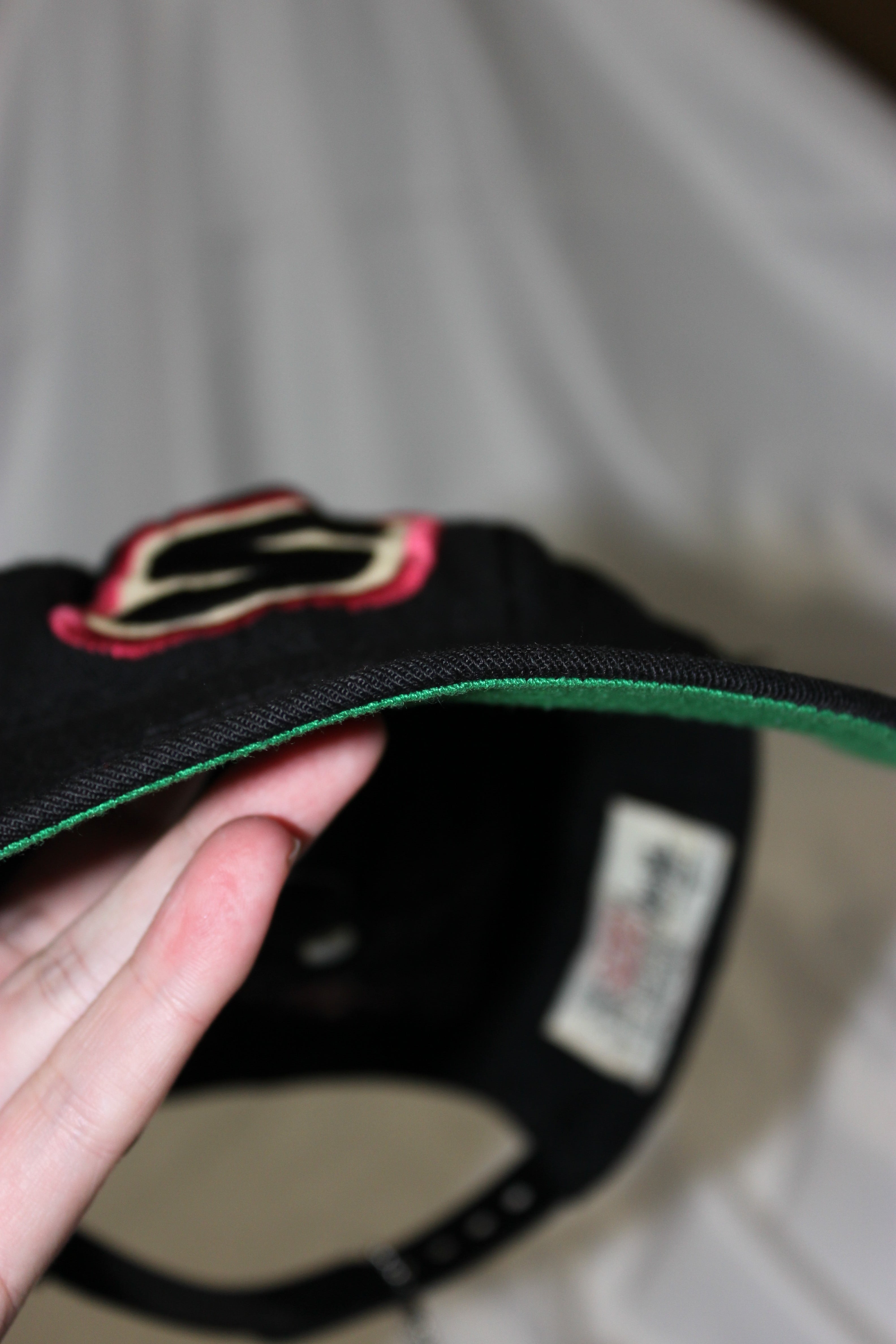 一部ロゴ横にリペアとツバが折れているのでかなりお安めに。