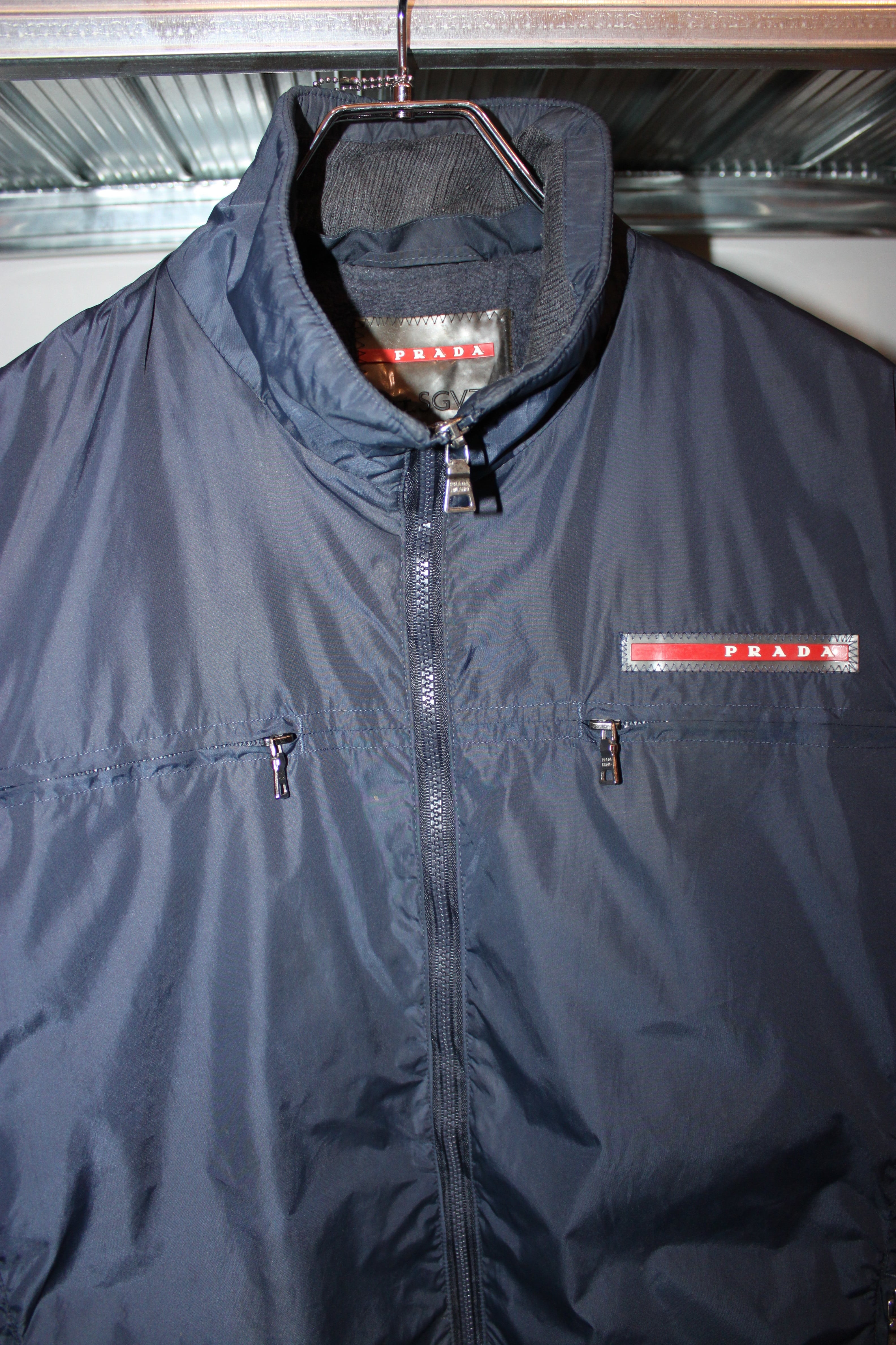 このジャケットもPRADA SPORTらしいネイビーボディにレッドのラバー
