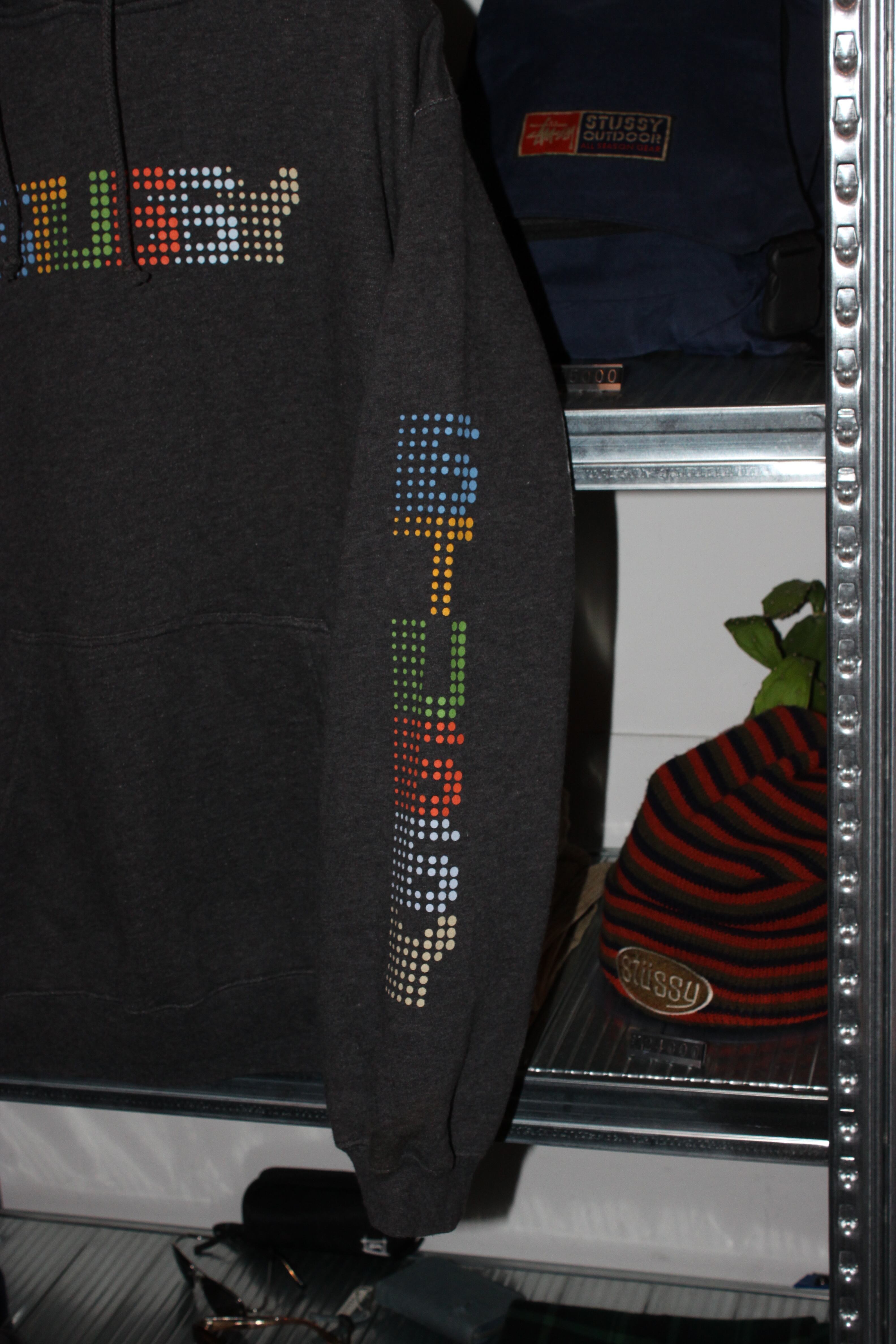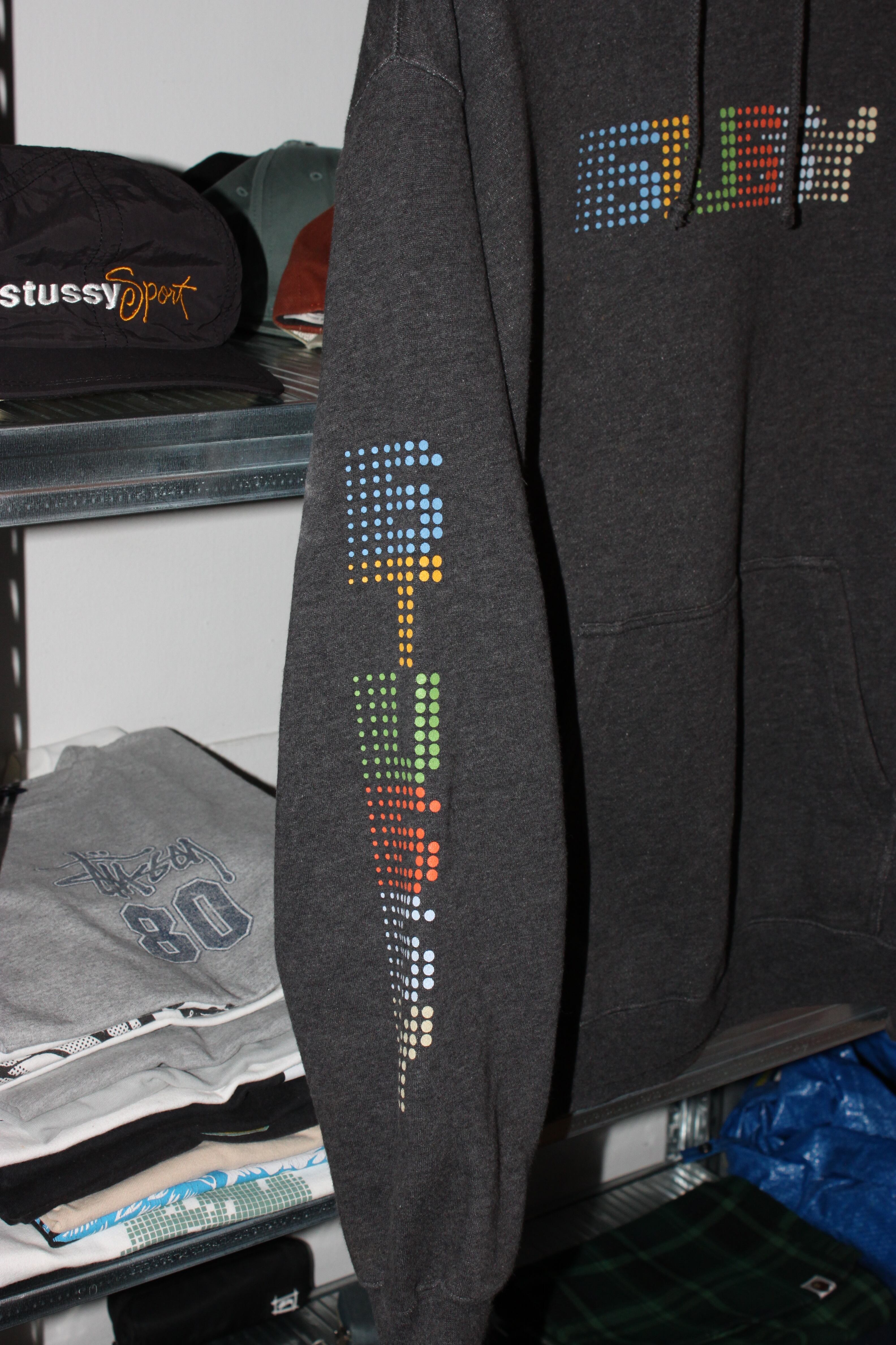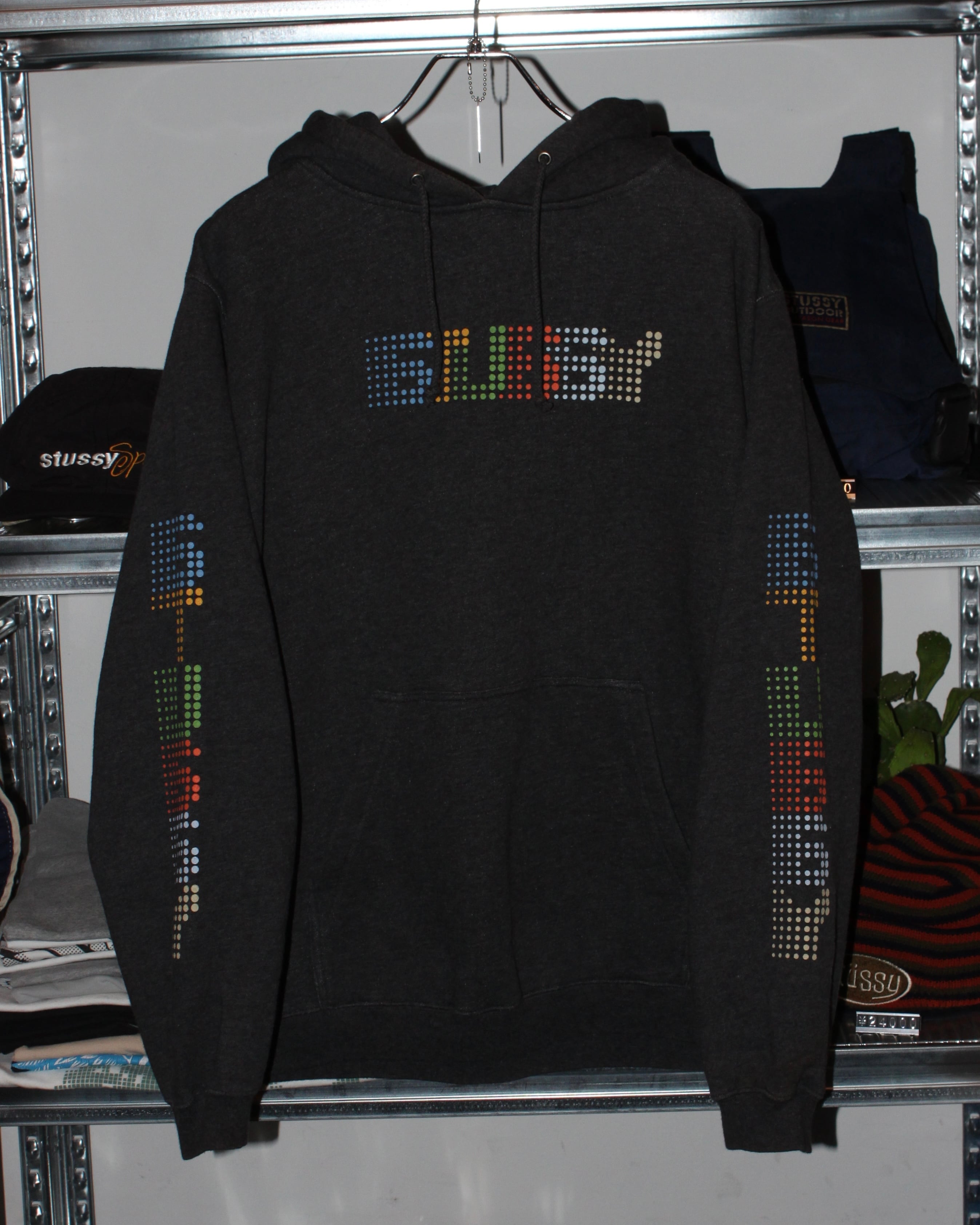 "00s stussy pixel logo hoodie"