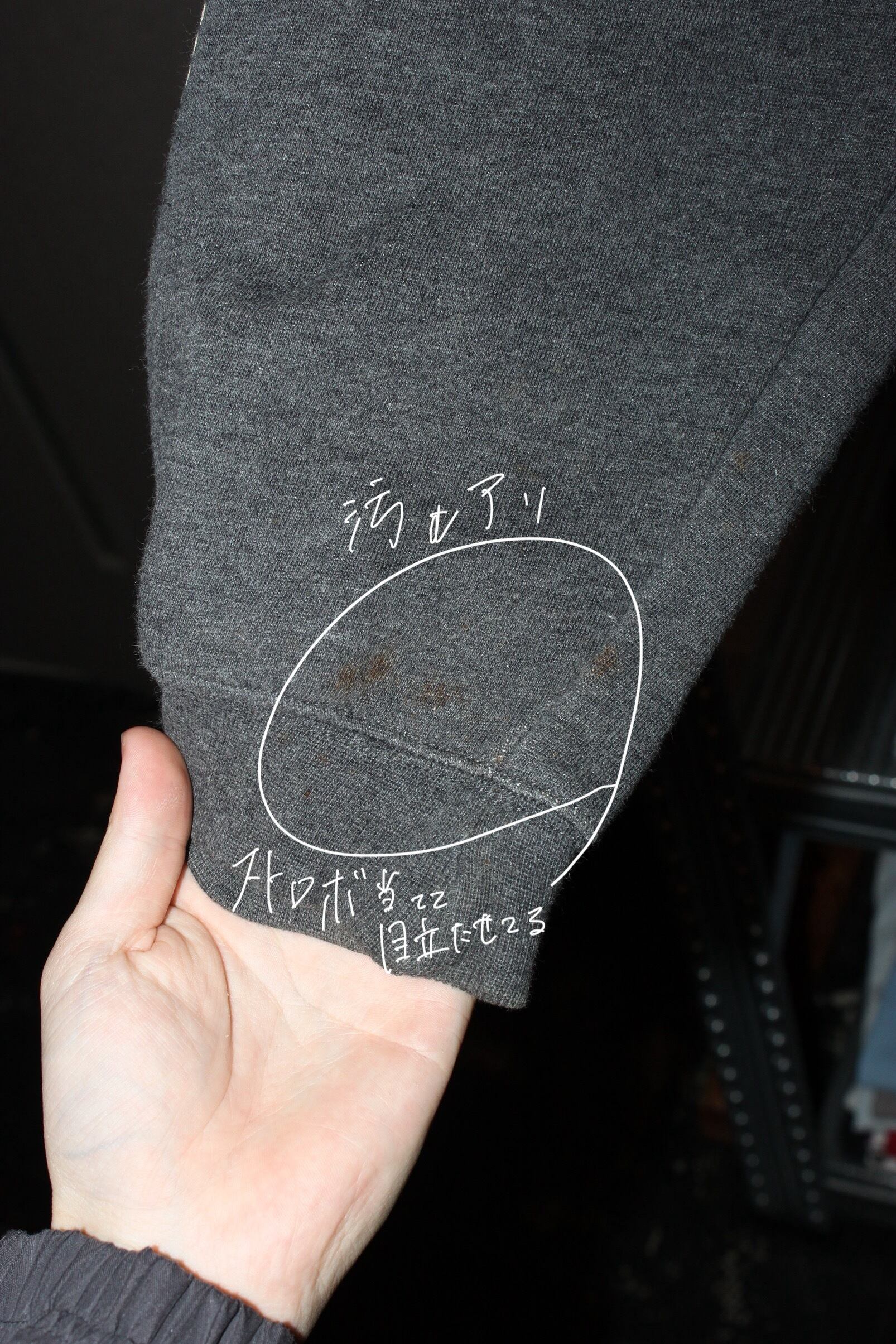 袖付近に汚れがあります
