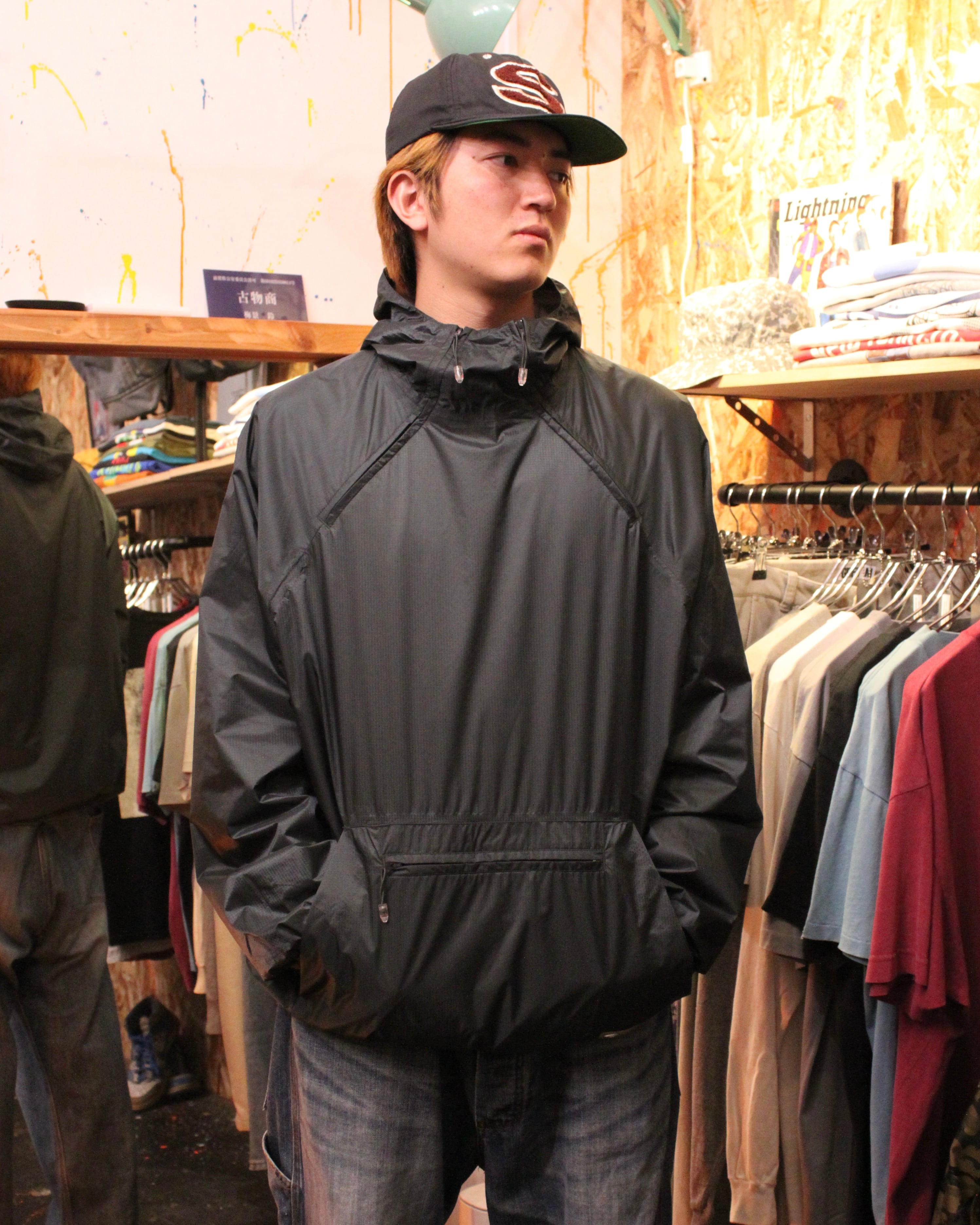 プルーオーバーのアノラックのようなディティールでハンドポケット部分など各ポケットにもそれぞれジップが付いており、ドローコードや各パーツの破損も見られません